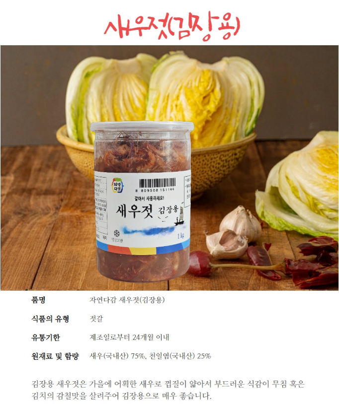 [자연다감] 김장용 새우젓 2kg